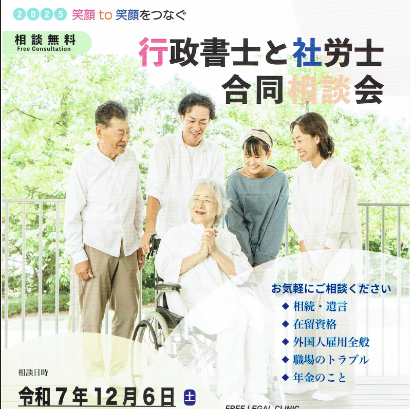 相続や年金、労働問題など、個人的な相談から職場の相談など、なんでもご相談くだ